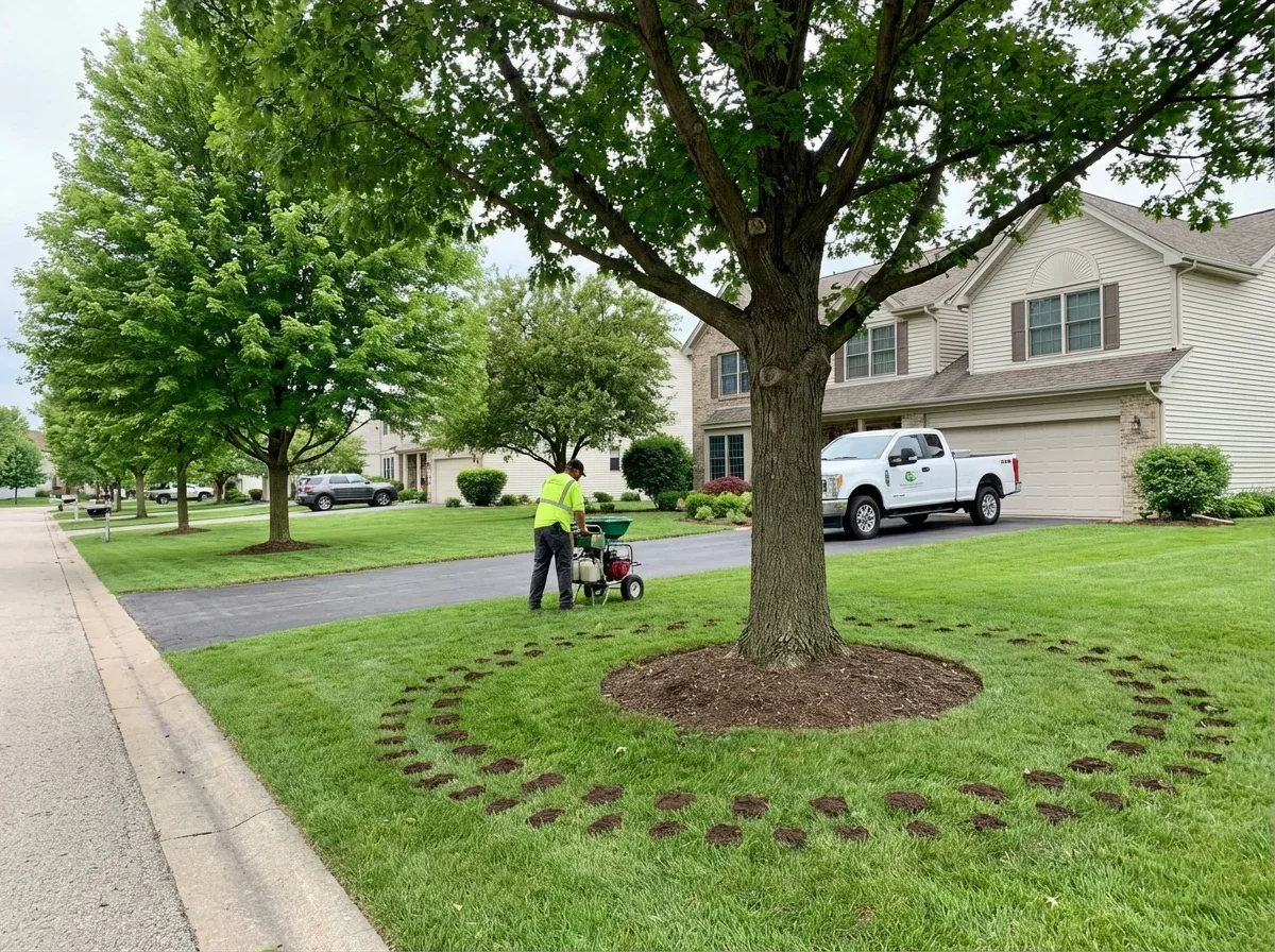 Timing matters in Wisconsin. Spring applications (late April through May) fuel leaf-out and new growth. Fall applications (September through October) build root reserves before dormancy. Summer applications during drought stress don't work — the tree can't take up nutrients when it's in survival mode.